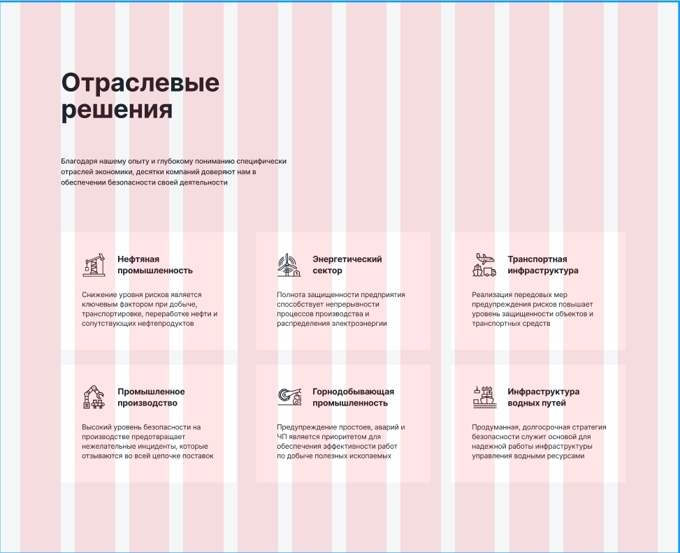 Благодаря нашему опыту и глубокому пониманию специфики отраслей экономики, десятки компаний доверяют нам в обеспечении безопасности своей деятельности